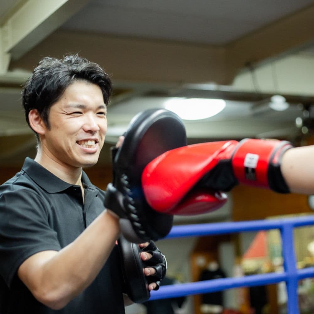 トレーナーが持つミットにパンチを打ち込む、実戦に近いトレーニング。対象物があることで、イメージとして捉えやすくなります。ワンツーをしっかり打てるようになると、すべての動きに応用できます。実戦の勘を養うための重要な練習ですので、どんどんミット打ちをやっていきましょう。